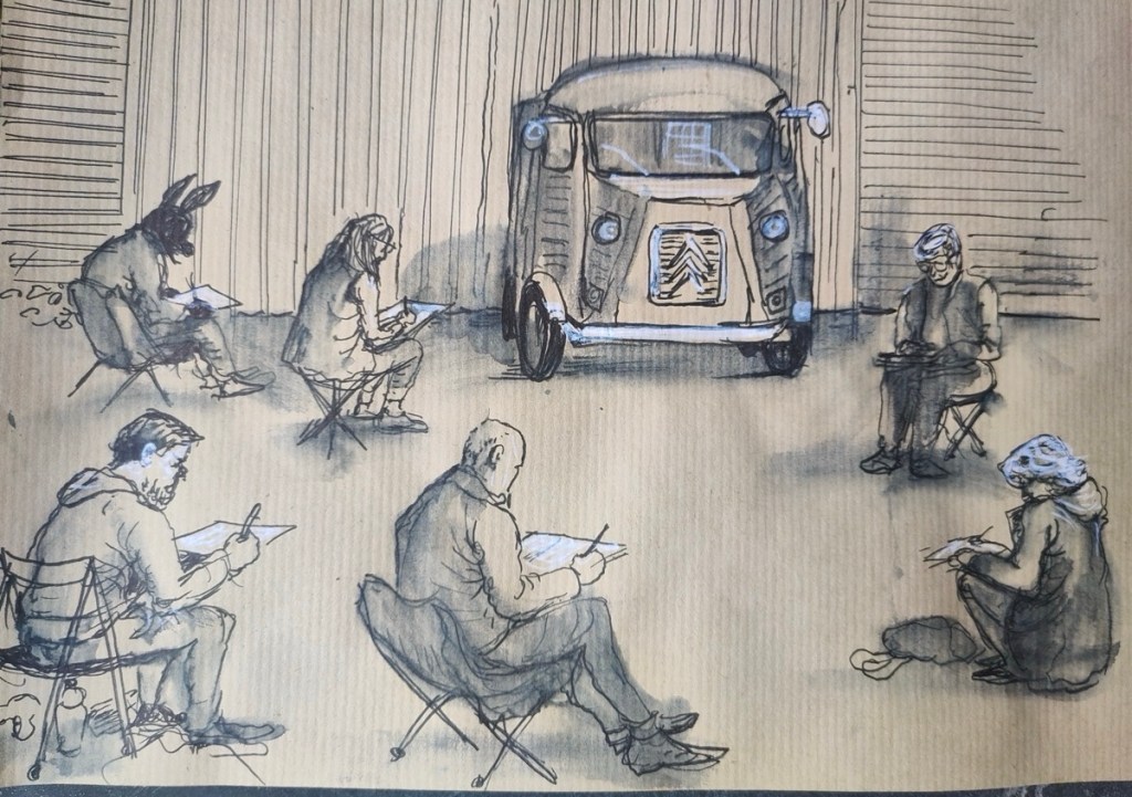 Es kamen viele, es gab viel zu zeichnen, drinnen oder draußen, von Plastikstieren bis Bierkrug-Ausstellung, war alles dabei.