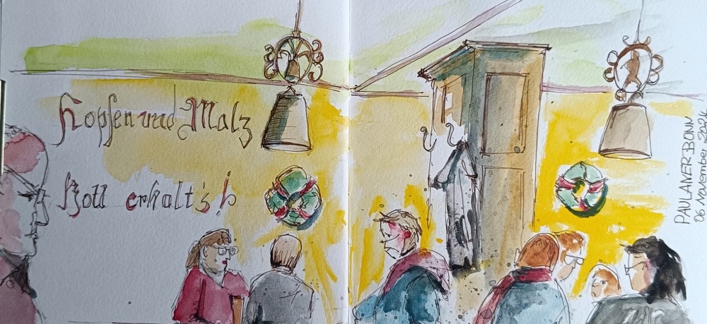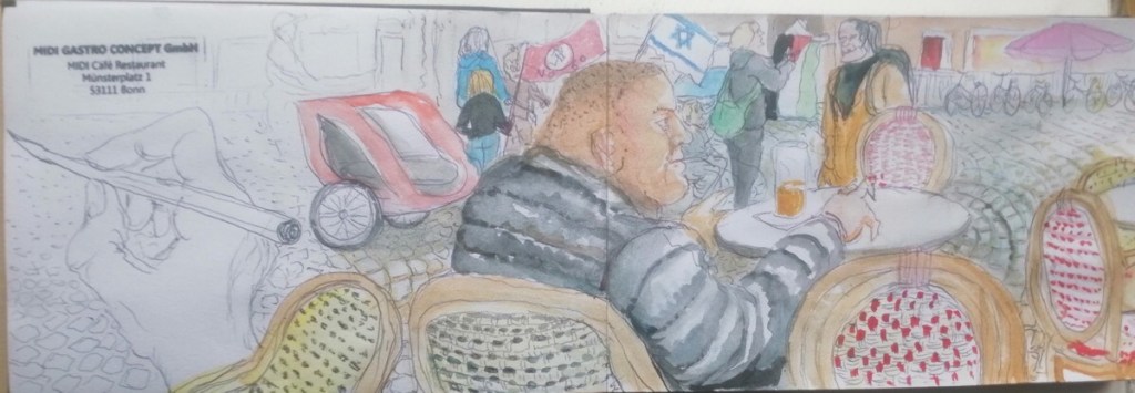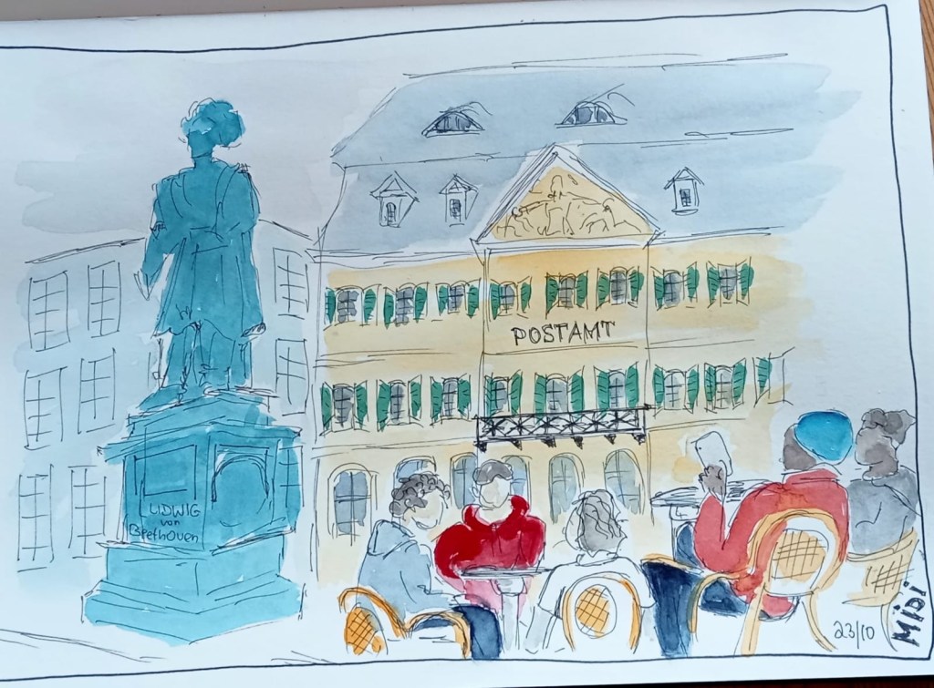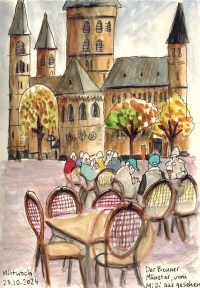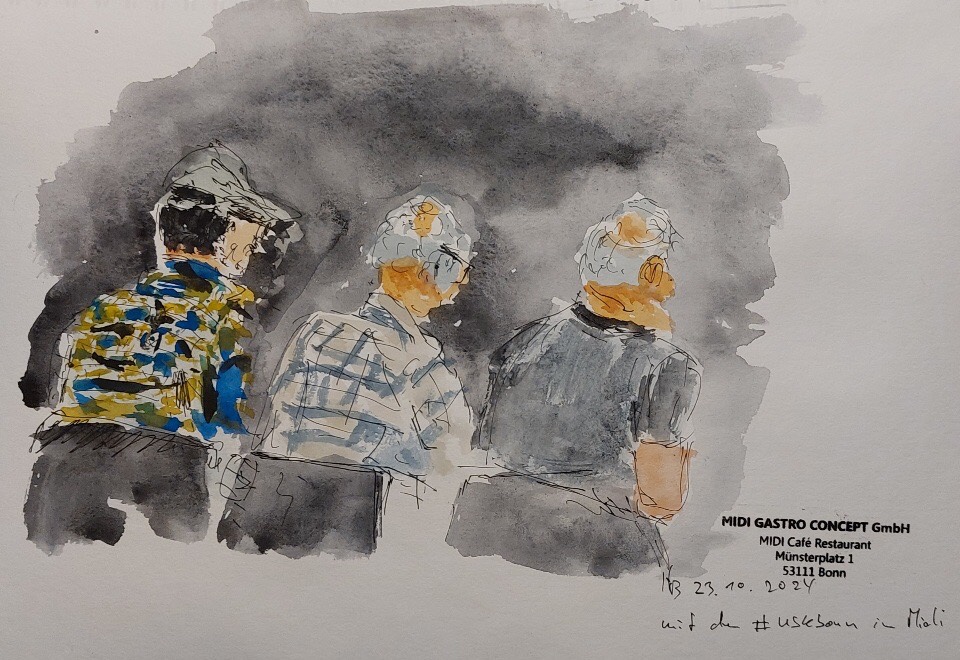 In September 2024 waren eine ganze Reihe von den Bonner Urban Sketcher in Leipzig bei dem Deutschlandtreffen der Urban Sketcher. Mehr als 800 Sketcher aus ganz Deutschland hatten sich angemeldet. Alle passten nicht auf das Bild.