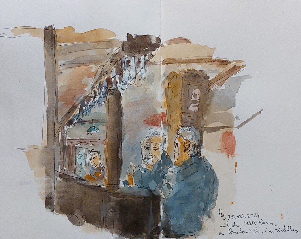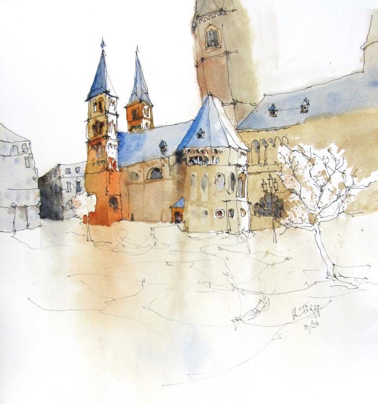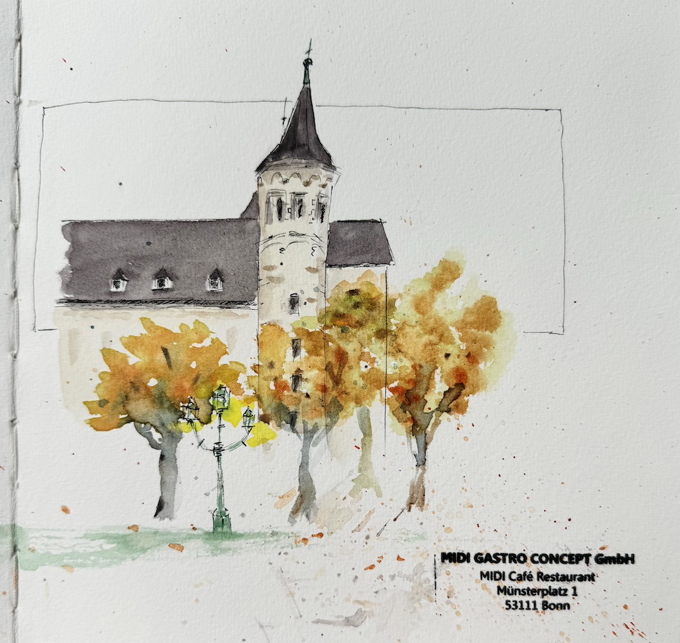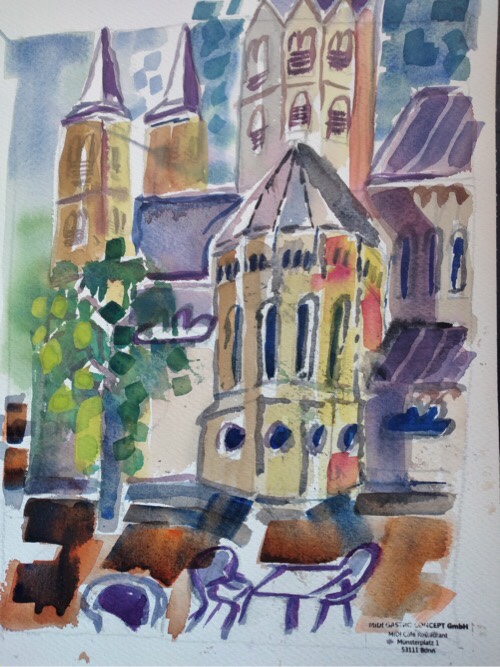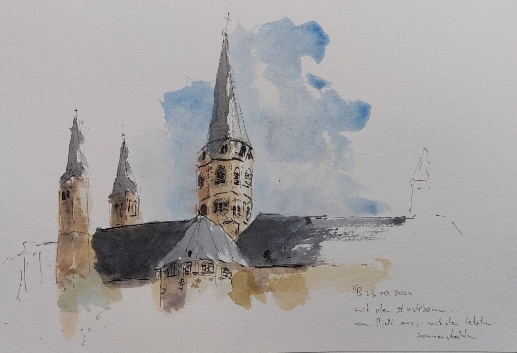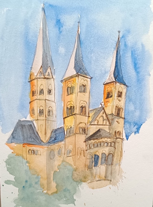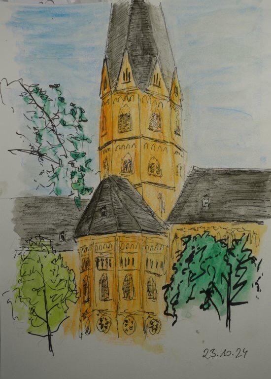 In 2024 waren wir im Sommer mit den (mittlerweile offiziellen!) Urban Sketcher Gruppen aus Köln und Koblenz in Remagen. Für 2025 ist auch wieder ein Treffen geplant (mittlerweile unser drittes).