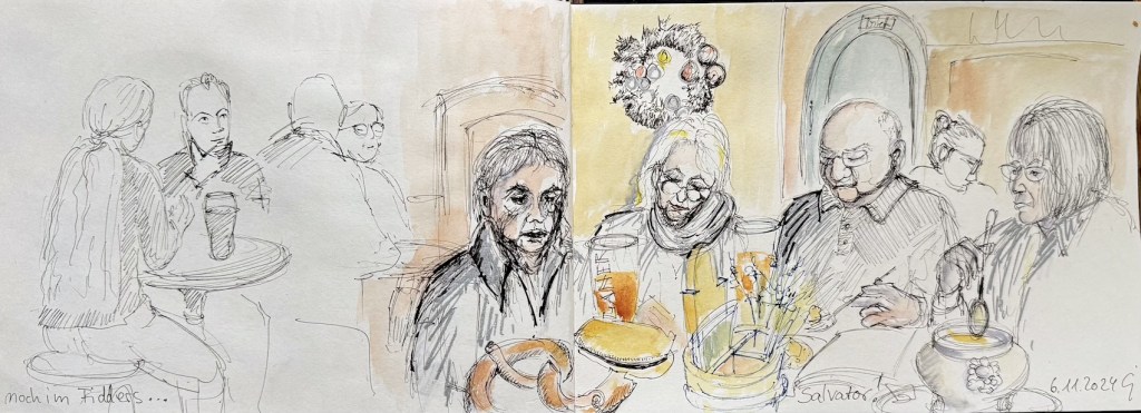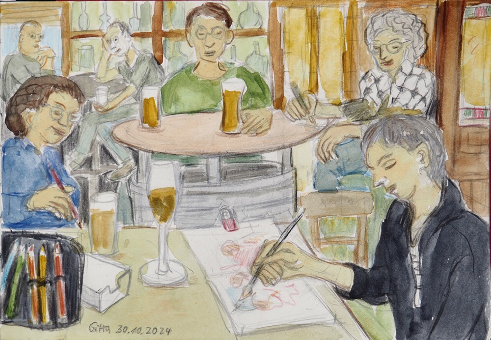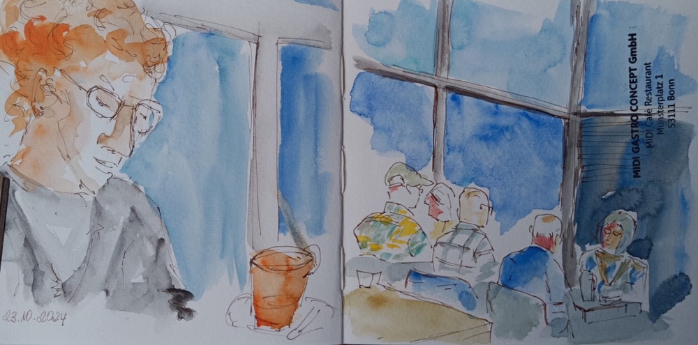In 2024 haben wir uns 50 mal mittwochs in Bonn zum Zeichnen getroffen. Manchmal waren wir nur zu fünft, manchmal waren wir mehr als 30 Sketcher.