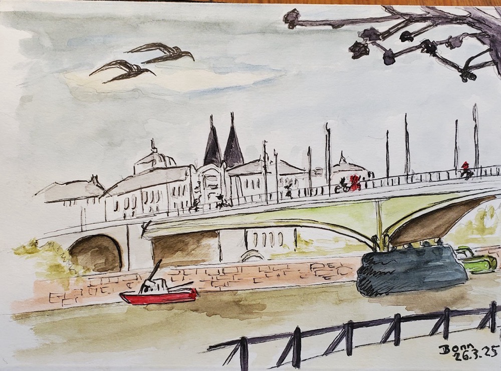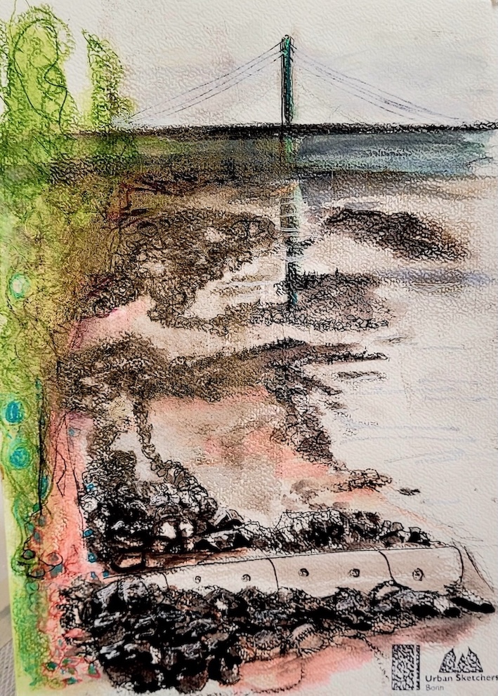 Diesmal treffen wir uns auf der Beueler Seite. Am Mittwoch, dem 26.03.2025, ab 18 Uhr (oder auch früher) wird gezeichnet am Rheinufer zwischen Kennedybrücke und Mirecourtplatz, dort, wo die Sitzstufen sind.