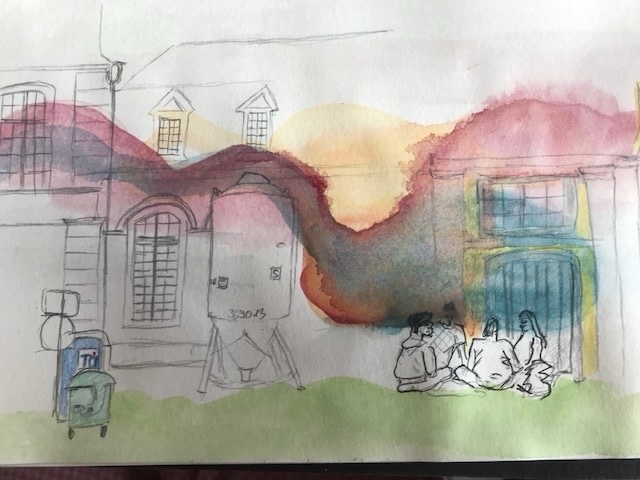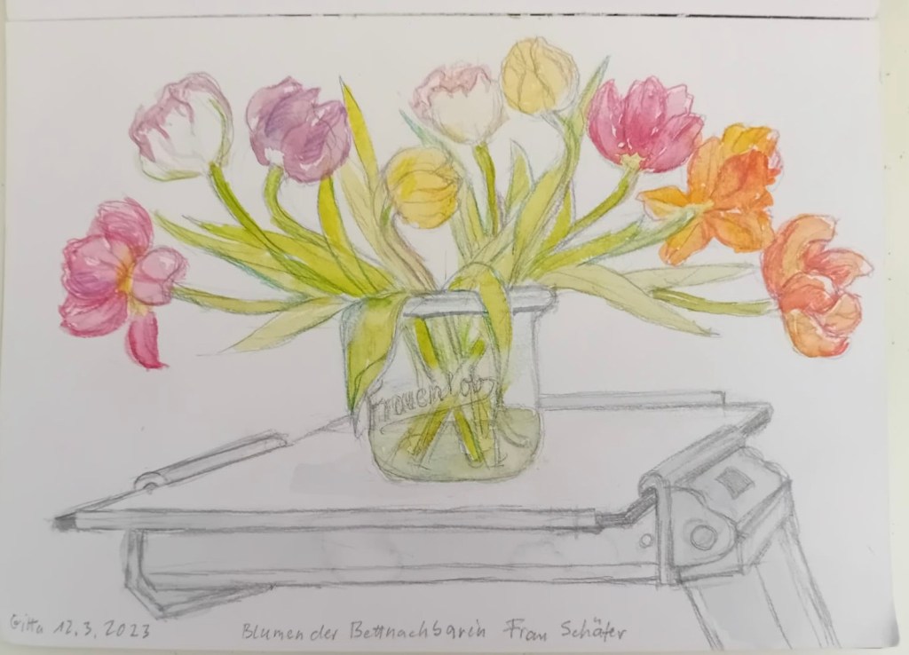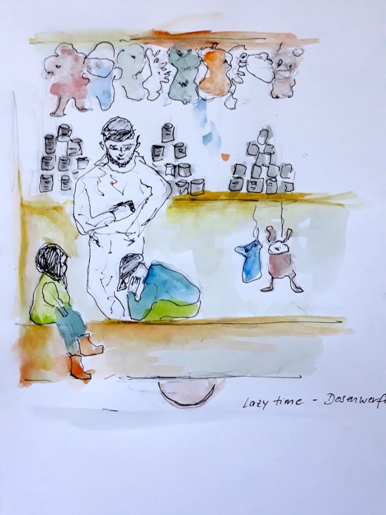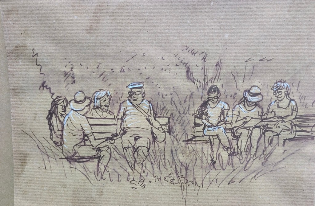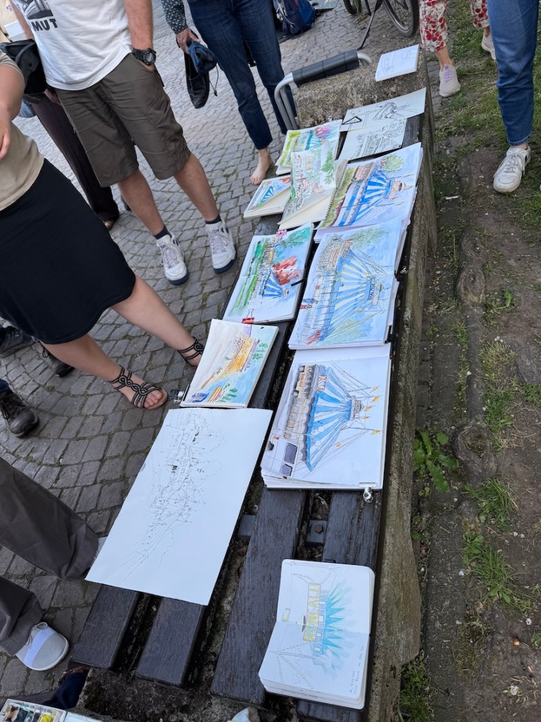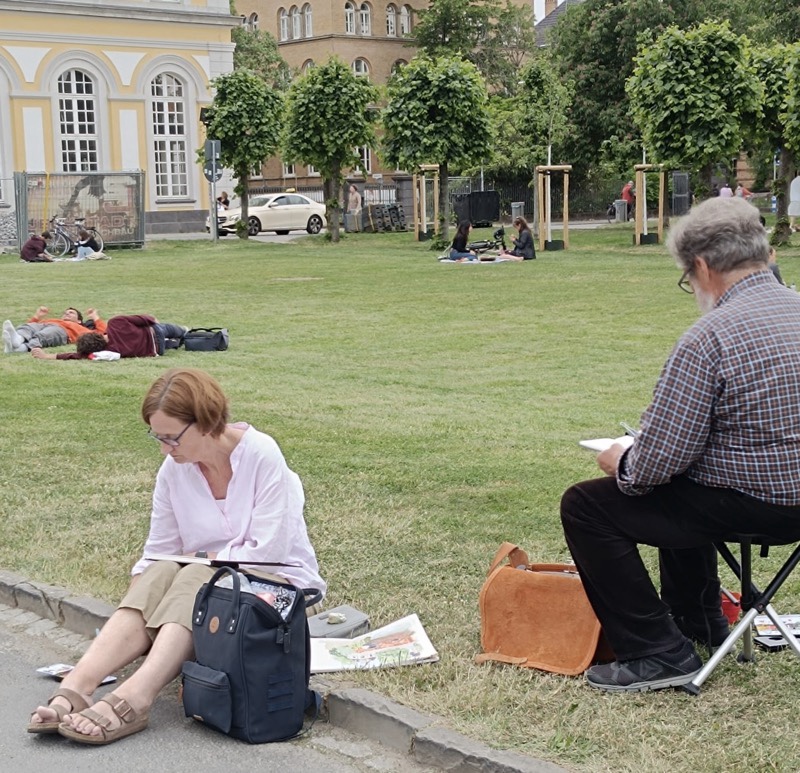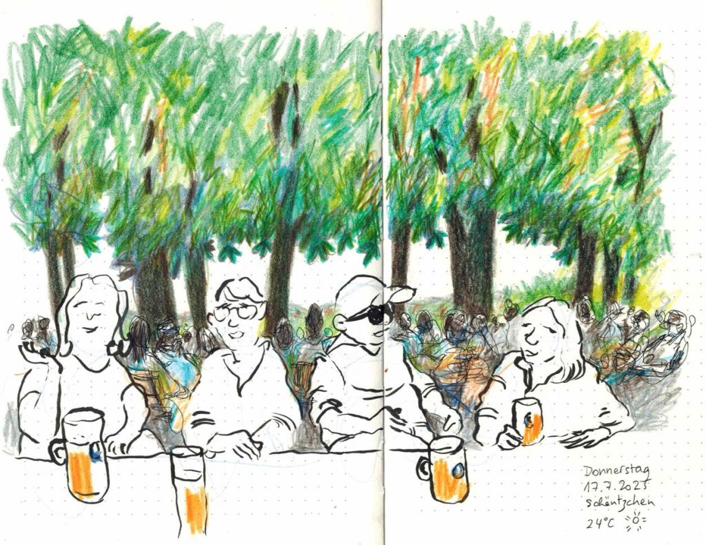 Es war ein sehr heißer Tag… aber wir hatten jeder ein schattiges Plätzchen zum Zeichnen und haben es alle sehr genossen: