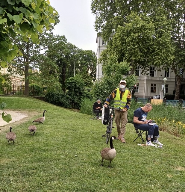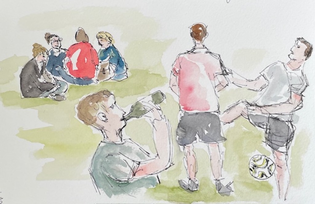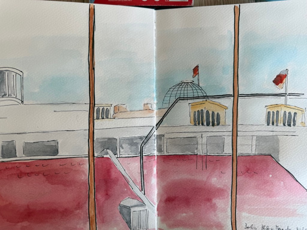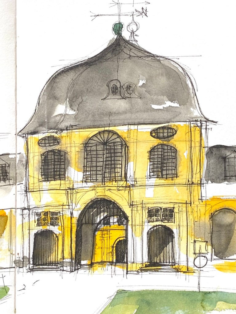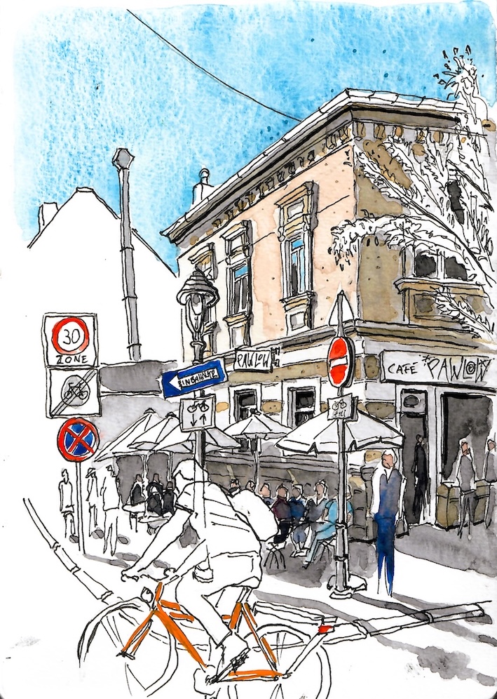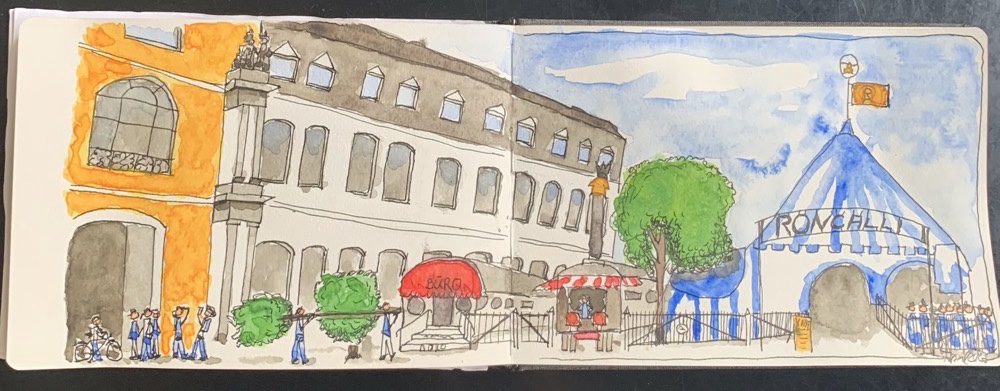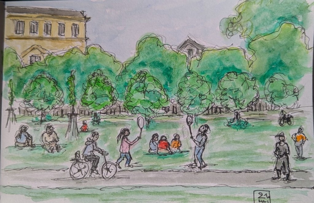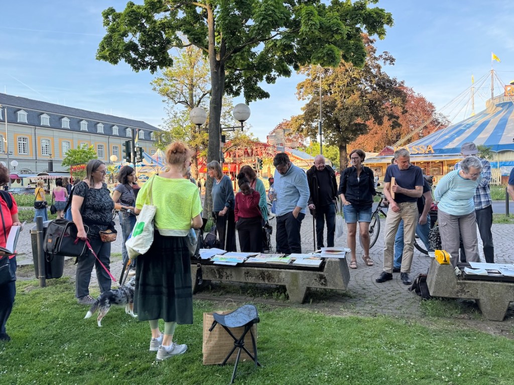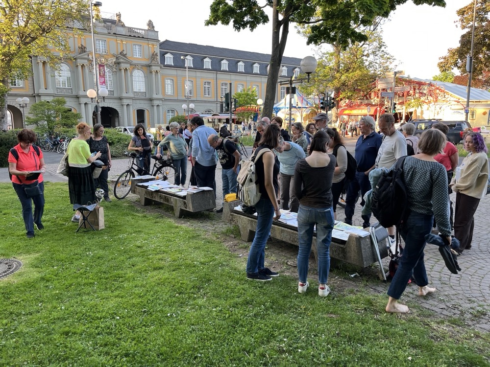 Am kommenden Mittwoch, dem 21.05.2025, treffen wir uns im oberen, südwestlichen Bereich der Poppelsdorfer Allee, also am Schloss, am Teich, an der Brücke ab 18 Uhr oder früher, wer kann. Die Kastanien der Allee sind gerade prächtig, blühen noch teilweise, das Schloss ist mal nicht eingerüstet und bei gutem Wetter sammelt sich dann viel Volk auf der Wiese davor. Am Gärtnerhäuschen wird Boule gespielt, es wird flaniert am Teich und diese schöne Atmosphäre wollen wir in unseren Sketchen festhalten. Die Vernissage machen wir um 19:30 Uhr an der kleinen Brücke oder dort in der Nähe.