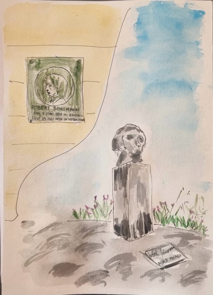 Julia – Schumannbüste und -tafel am Schumannhaus