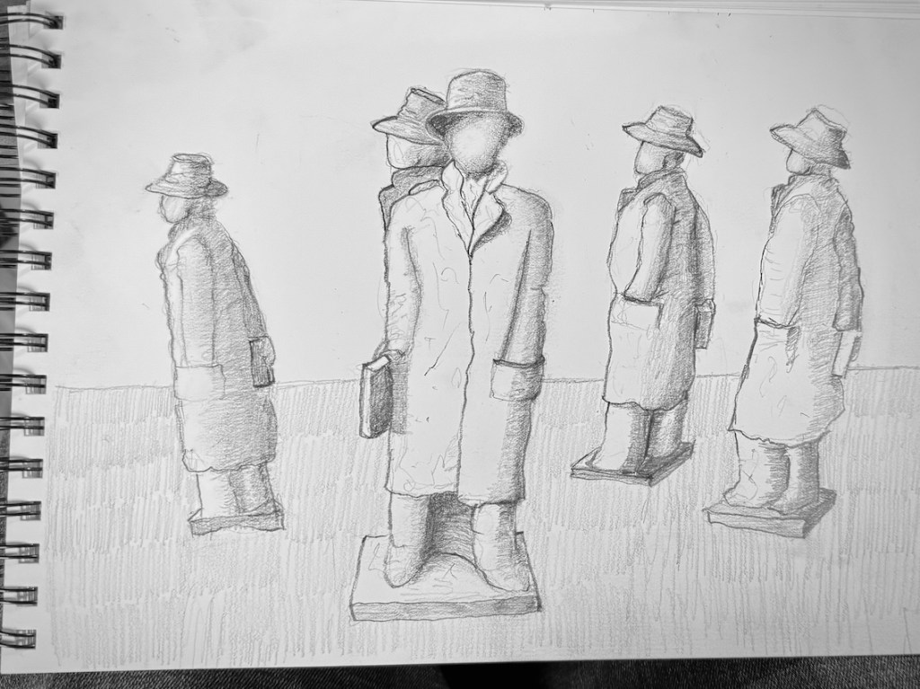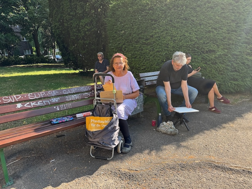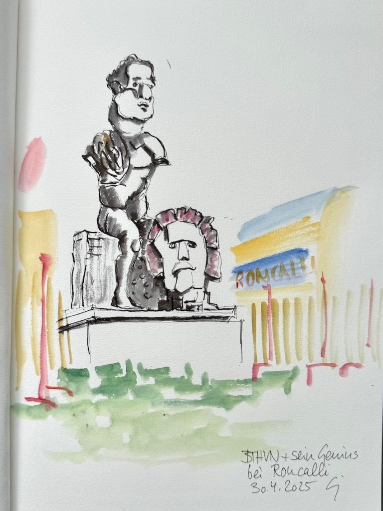 Der Künstler, der die Skulptur „Passanten“ geschaffen hat, die wir vor Kurzem auf dem Konrad Adenauer Platz gesehen und gezeichnet haben, hat sein „Baumhaus Atelier“ in Beuel und lädt uns ein, bei ihm im Garten zu zeichnen. Das wollen wir natürlich gerne wahrnehmen und treffen uns dort am Sonntag, dem 22.06.2025, um 15:00 Uhr vor dem „Baumhaus Atelier“ in der Kreuzstraße 47 in 53225 Bonn Beuel. Bitte wartet dort bis wir alle beisammen sind – wir wollen Wolfgang nicht damit belästigen, dass er jedem die Tür einzeln aufmachen muss.