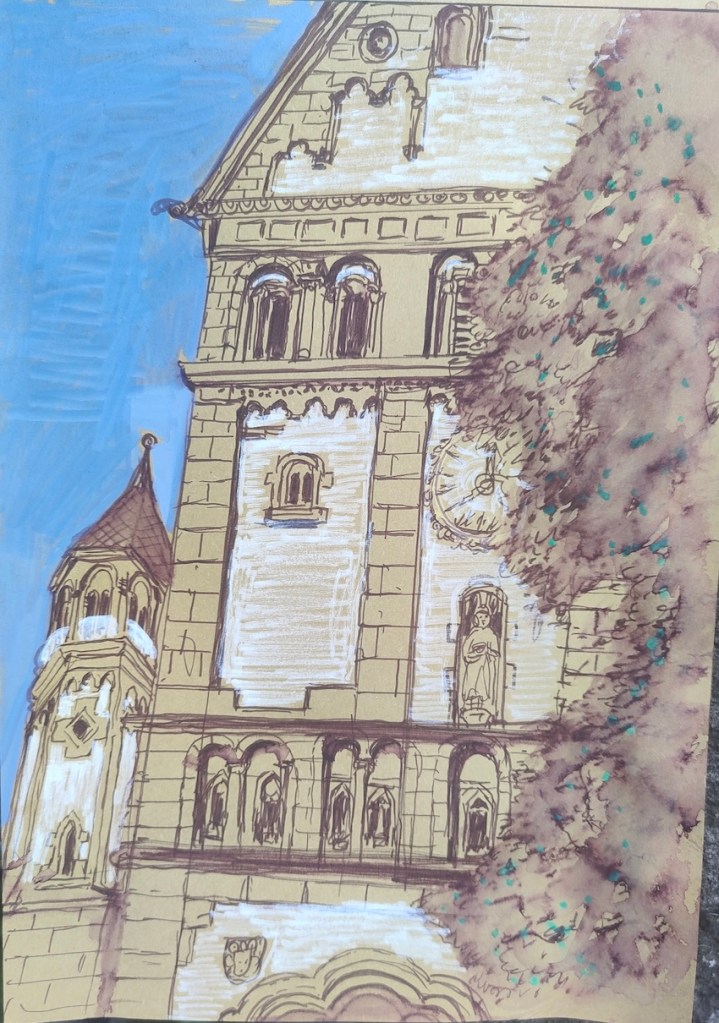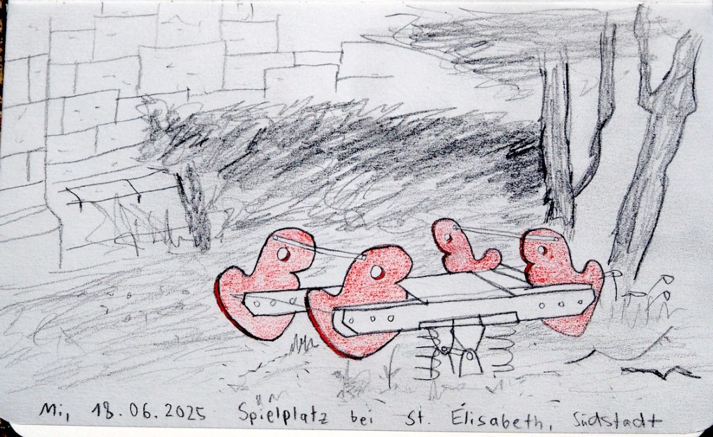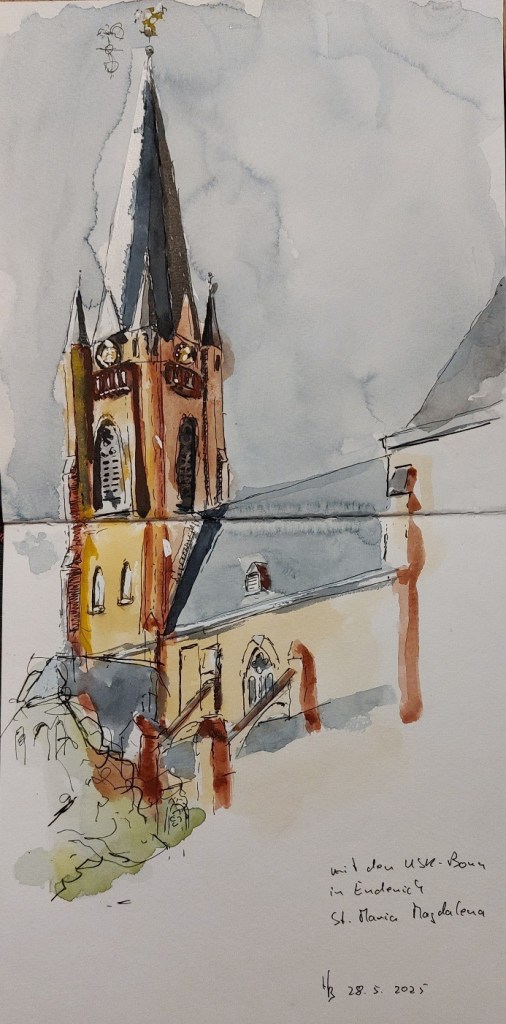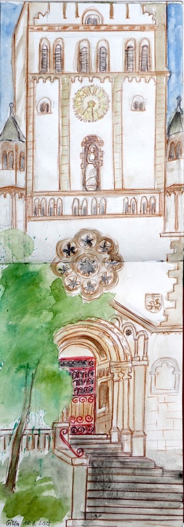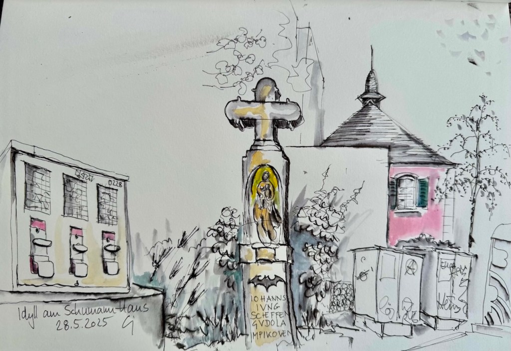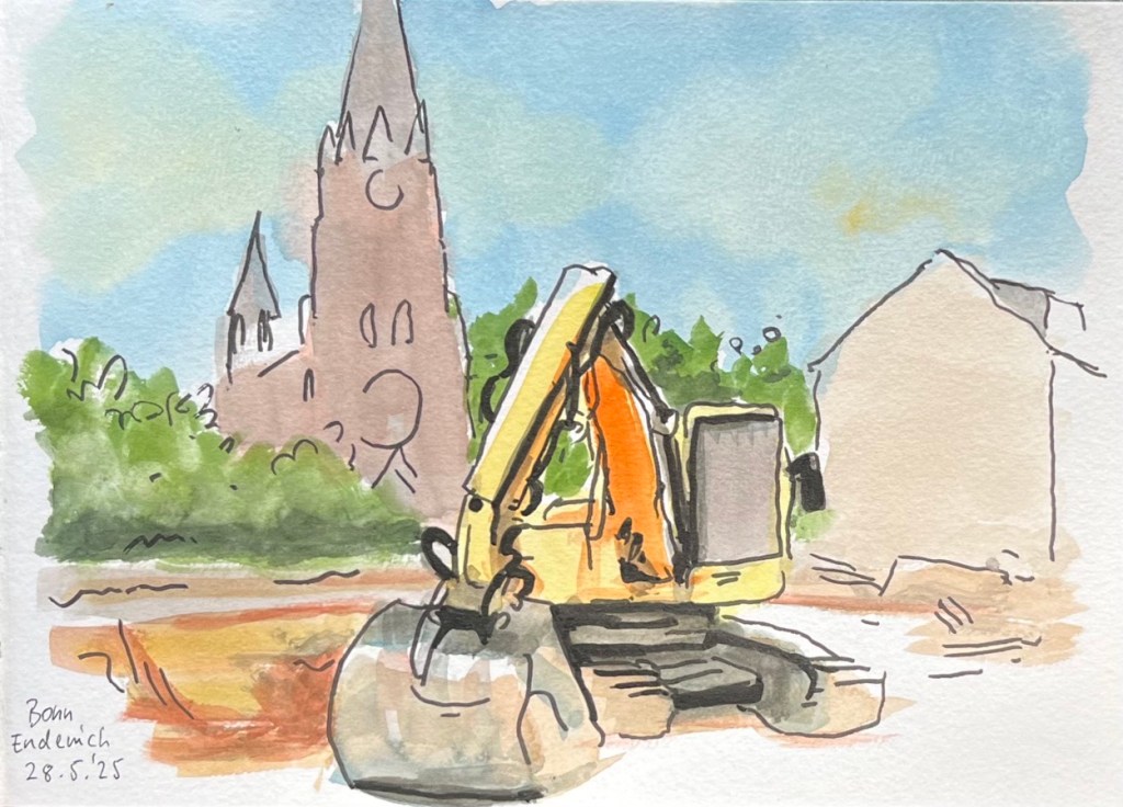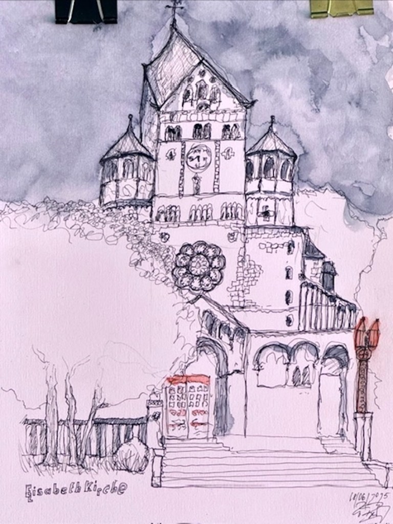 Am nächsten Mittwoch, dem 18.06.2025, treffen wir uns ab 18:00 Uhr an der Elisabethkirche in der Bonner Südstadt. Zwischen Schumannstraße, Bernard Custodis Strasse, An der Elisabethkirche und Diezstraße liegt diese neuromanische Kirche aus der Gründerzeit eingebettet in viel Grün. Für Zeichner gibt es viel zu entdecken: Details oder das große Ganze, die 20er Jahre Bauten der Umgebung, Kinderspiel und Bahnverkehr, beeindruckende Bäume, Straßenblicke, Mitmenschen – falls das Wetter mault das Café Extro an der Ecke… Um 19:30 Uhr treffen wir uns zur Vernissage am Hauptportal zur Schumannstraße hin.