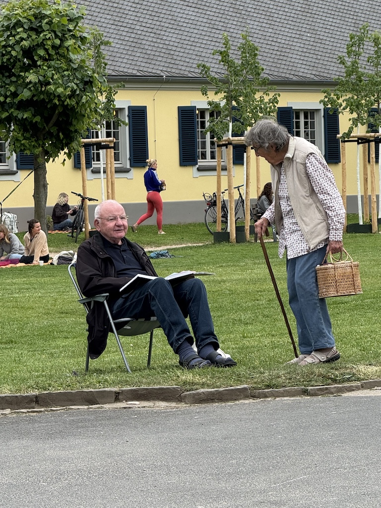 Birgitt – Spiel, Sport und Relax vor dem Scloss auf der Wiese Stuart – 2018: Slacklining, 2022: Trampolinwerfen, 2025: Akrobatik Kirsten – Chat, Sport und Drink vor dem Schloss Alfred – Ambiente auf der Schlosswiese Cornelia J. – Poppelsdorfer Schloss belagert von Studenten