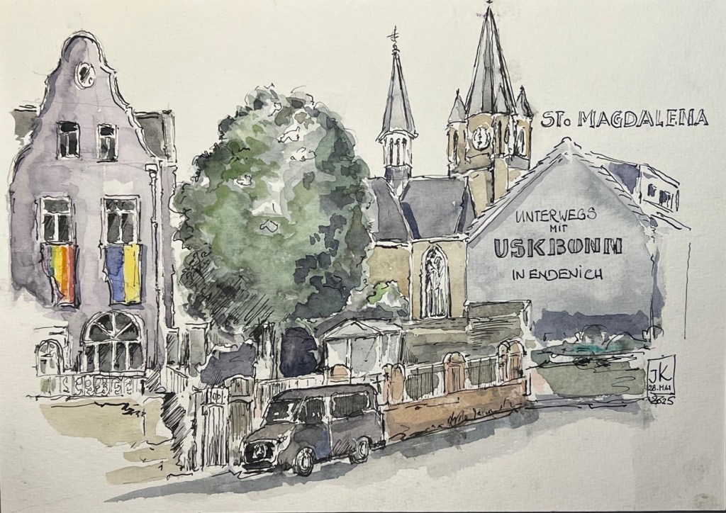 Das Wetter war etwas unsicher, also kamen weniger Sketcher als sonst. Trotzdem war es ein schöner Nachmittag/Abend in Endenich. Viele Blicke auf und um die St. Maria Magdalena Kirche und am Schumannhaus.