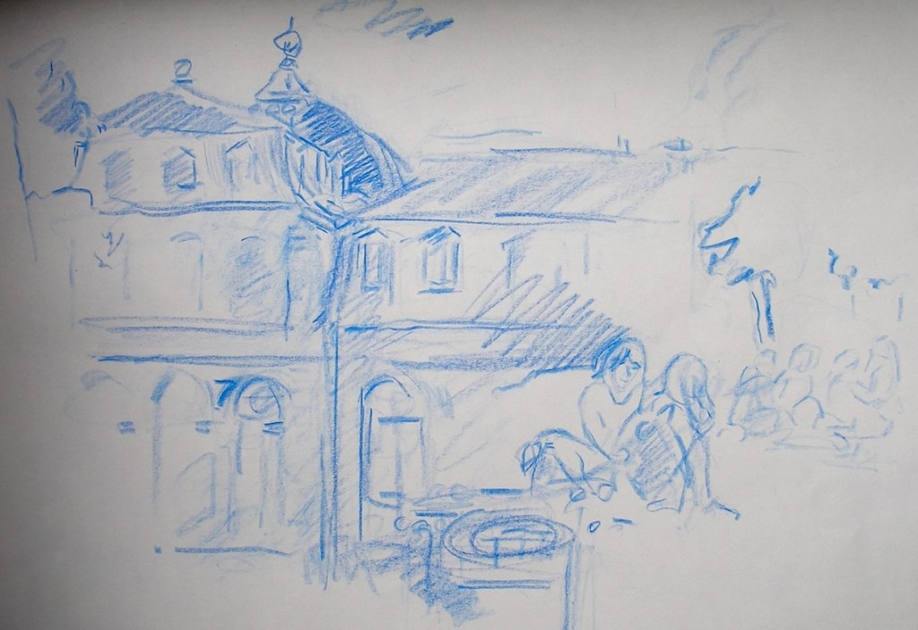 Herrliches Wetter, eine sehenswerte Kirche mit vielen interessanten Blickwinkeln, viele Sketcher kamen: