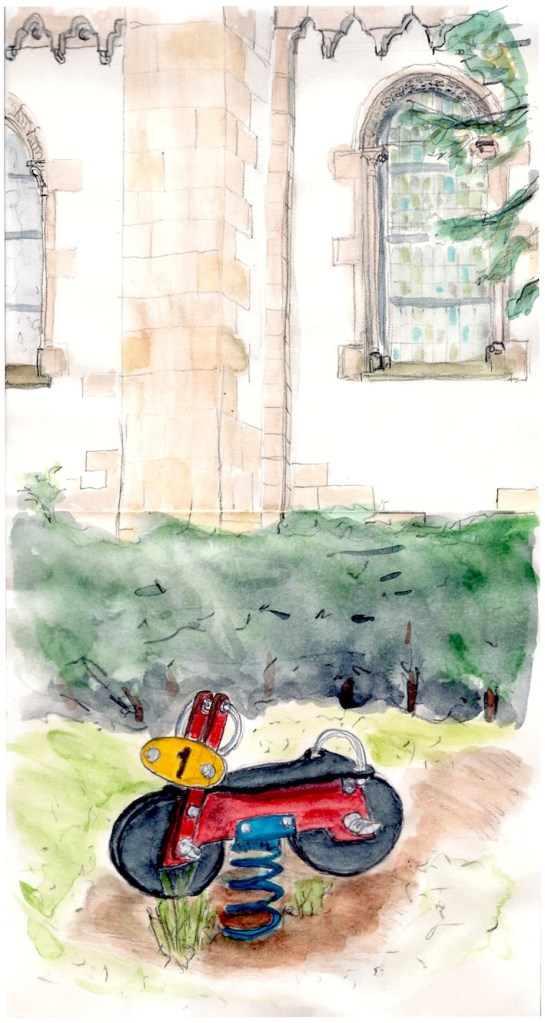 Martina S. – eine Kapelle am Seitenschiff vom Spielplatz aus gesehen