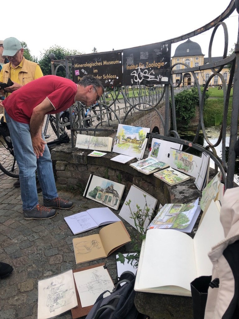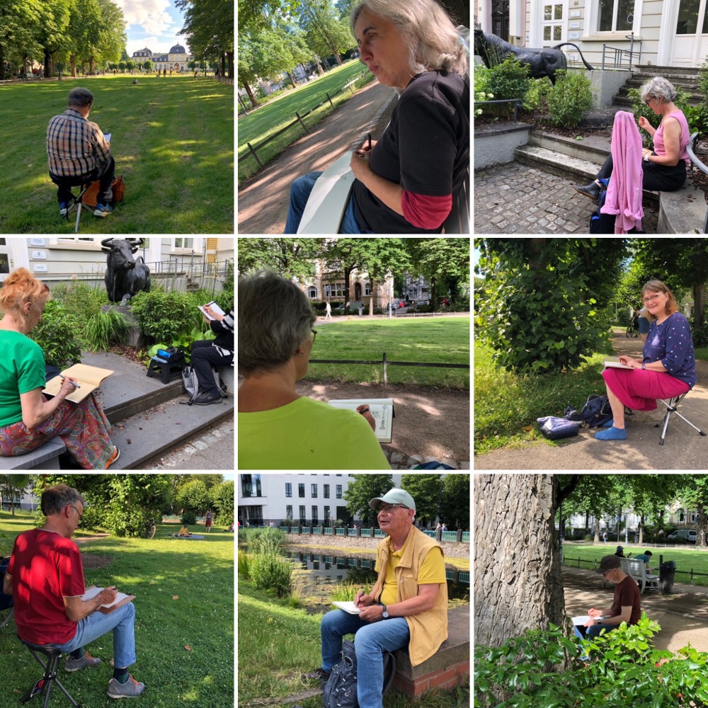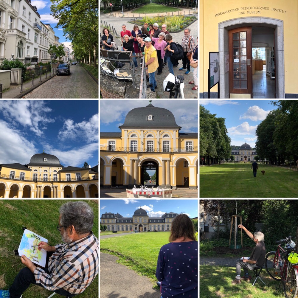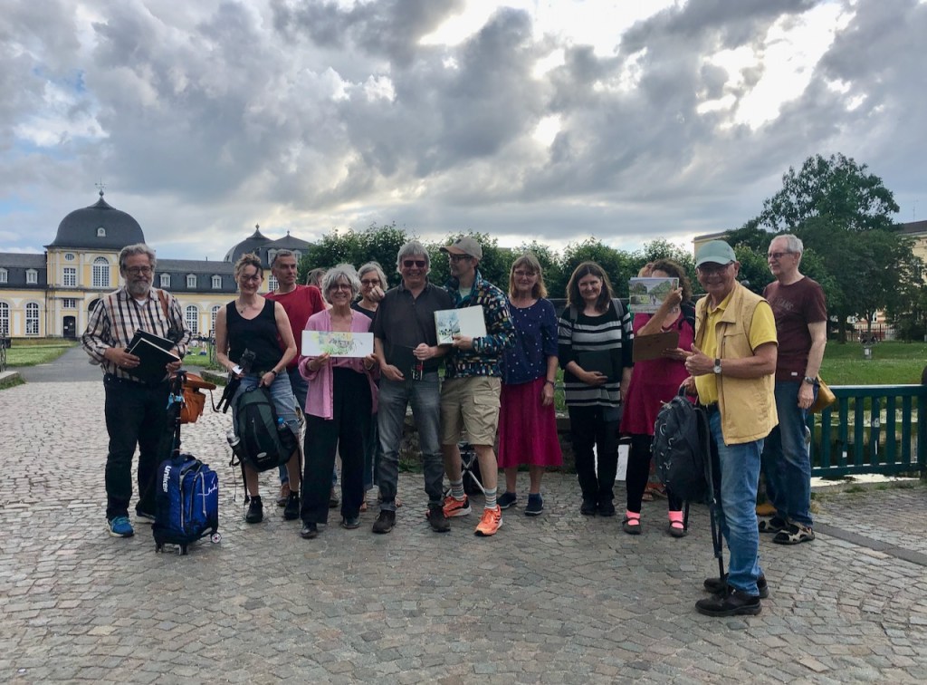 Das Wetter hat super mitgespielt, es kamen zahlreiche Mitzeichner*innen, etwa 25 an der Zahl. Die Godesburg war ein begehrtes Motiv, der Theaterplatz mit Umgebung wurde auch eingefangen.