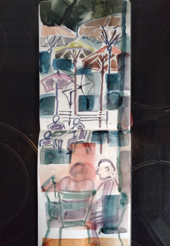 Holger – in dem Lokal “Opera”, während es regnete, beim Essen wird das Zeichnen schnell zur Nebensache 🙂